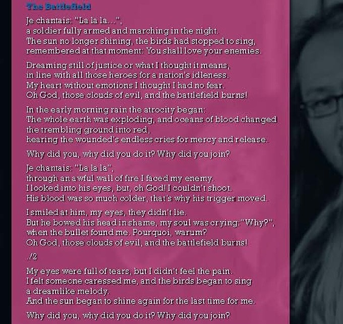 Une chanson de rock anti-guerre. Il raconte de quelqu'un, qui s'annonce bénévolement pour l'engagement de guerre. En angoisse permanente de mort il fait experience d'horreur de bataille et il tombe mort lui-même, parce qu'il ne peut pas tirer à son vis-à-vis - qui est lui-même avec sang-foid et tire. Dans ses dernières secondes il sentit plus de douleur et il écoute comme un oiseau chante une mélodie très belle. Le refrain "Warum hast Du teilgenommen?" ("Pourquoi tu as participé?") touche les sentiments…